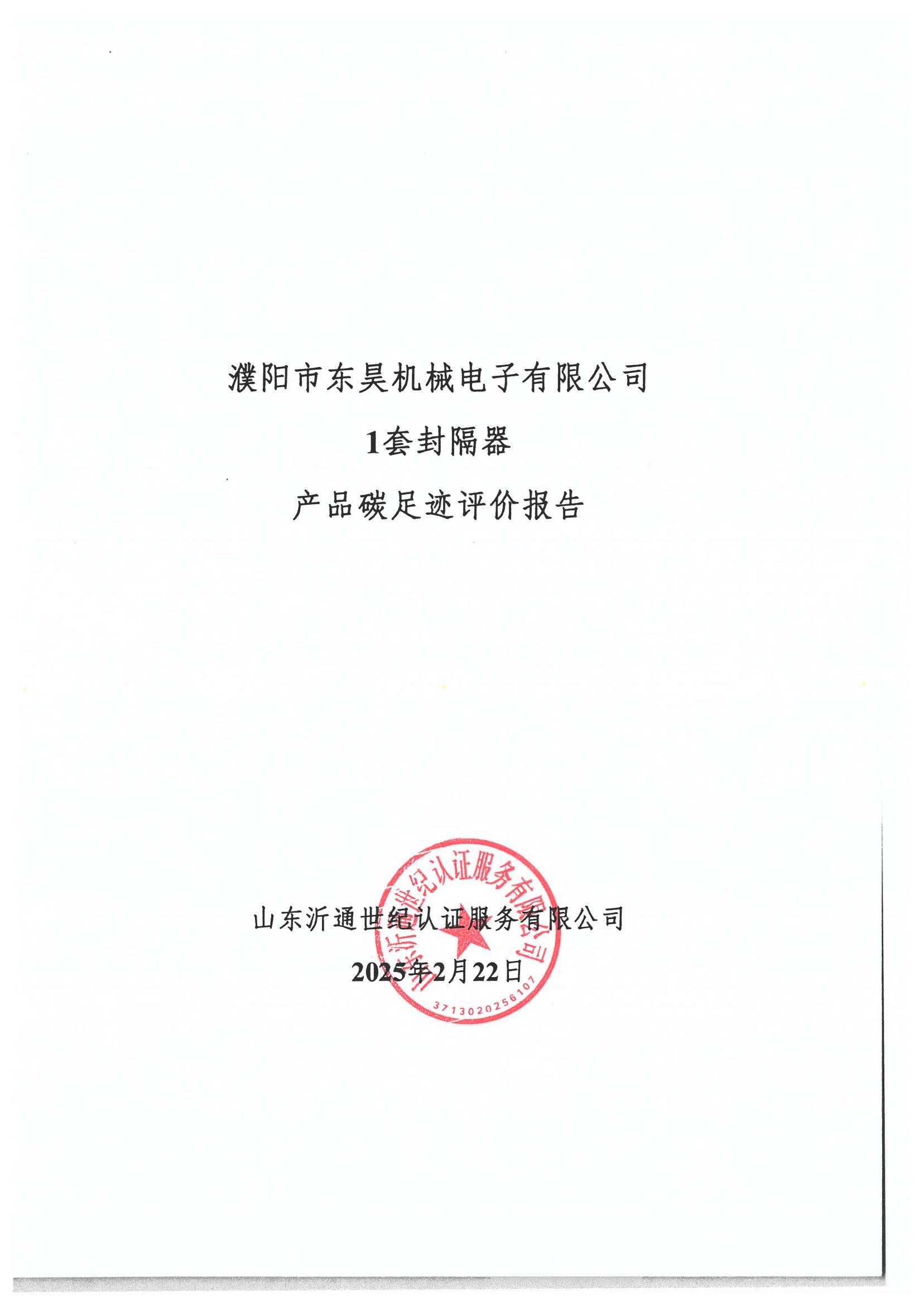 濮陽(yáng)東昊公司 封隔器 產(chǎn)品碳足跡評(píng)價(jià)報(bào)告(圖文)